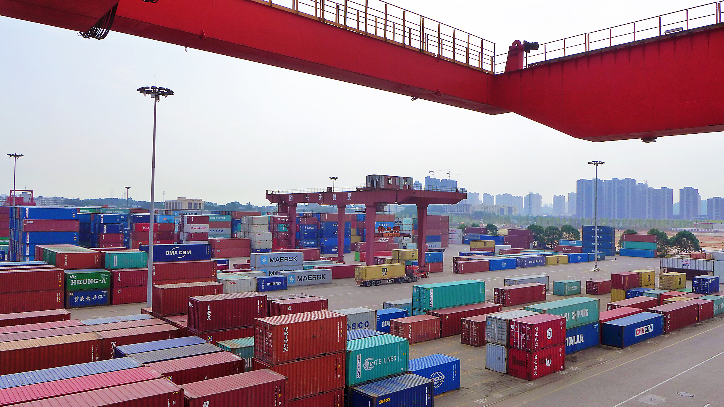 9月5日,長沙新港碼頭貨物裝卸呈現一派繁忙景象。借助“一帶一路”倡議和長江經濟帶國家戰略。
