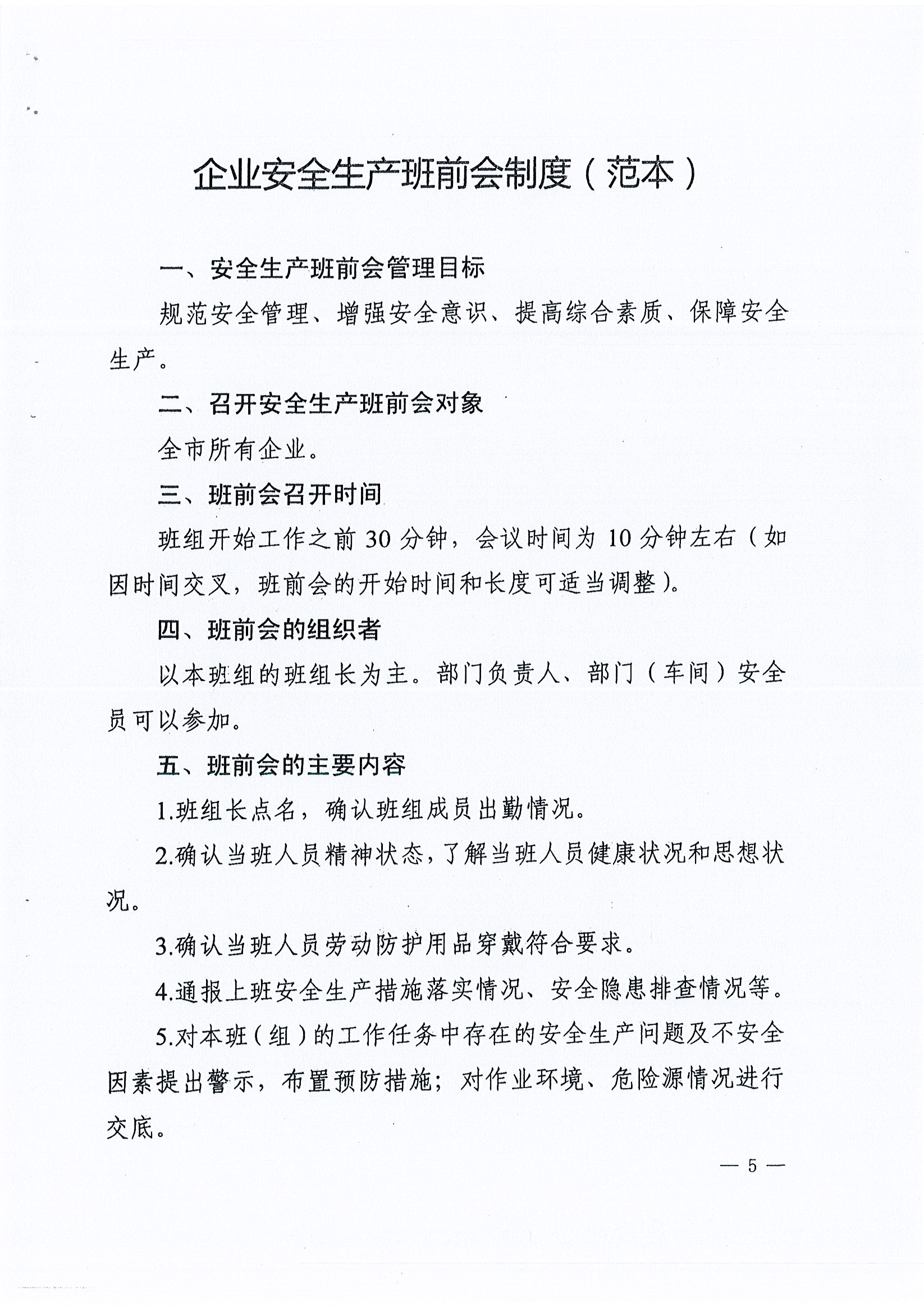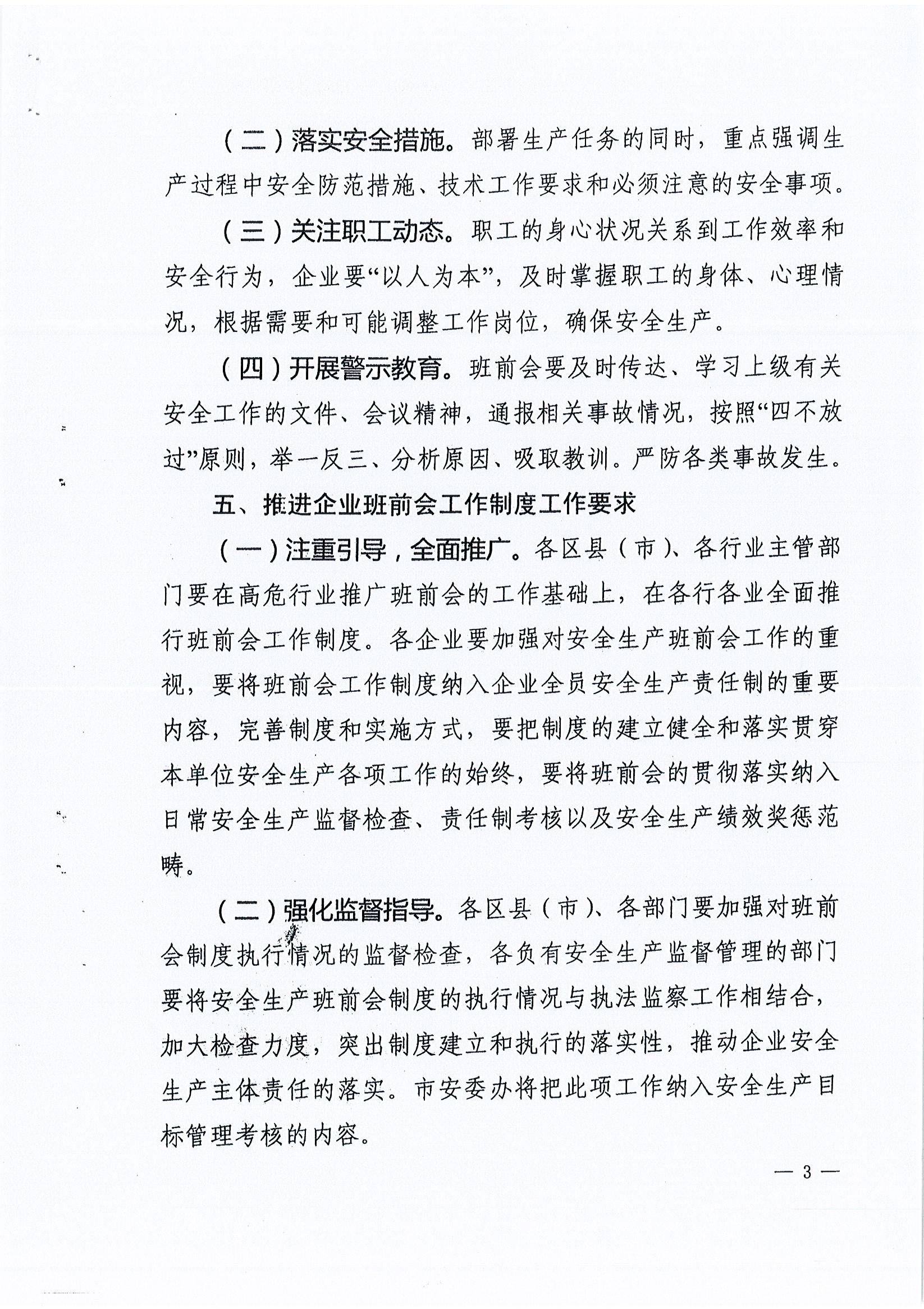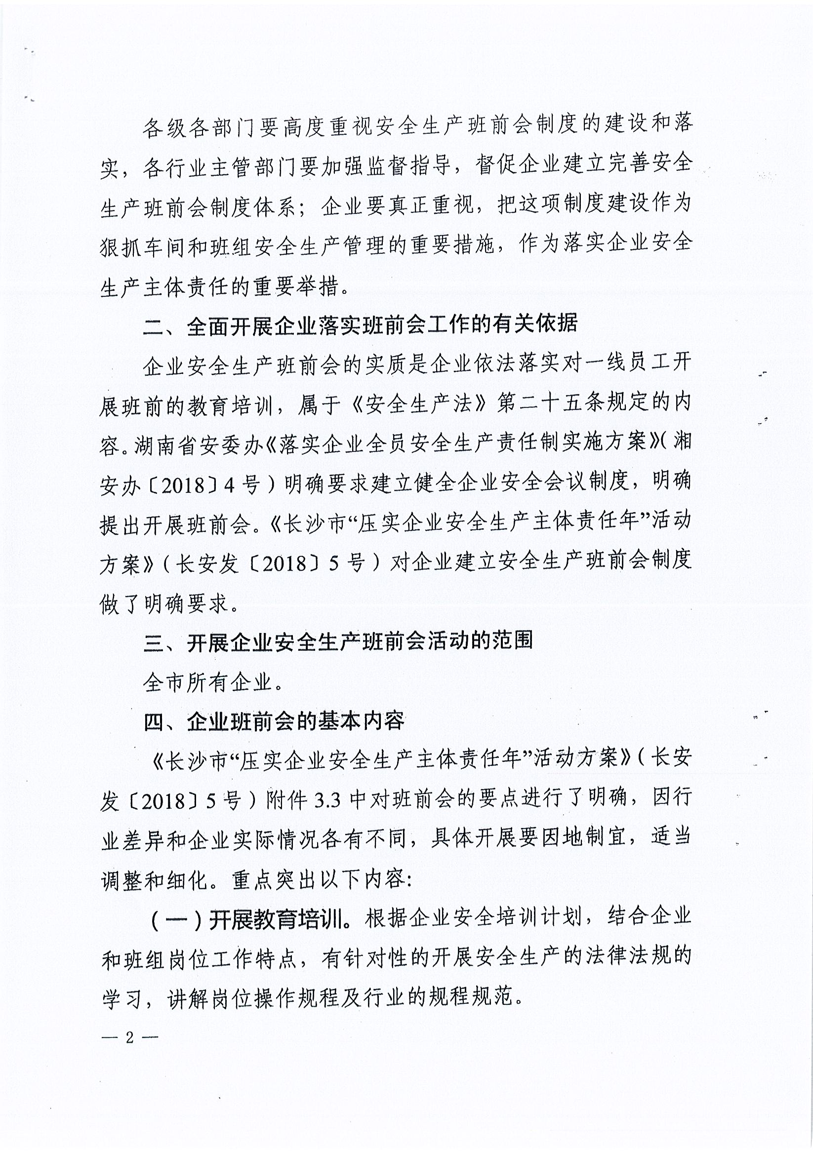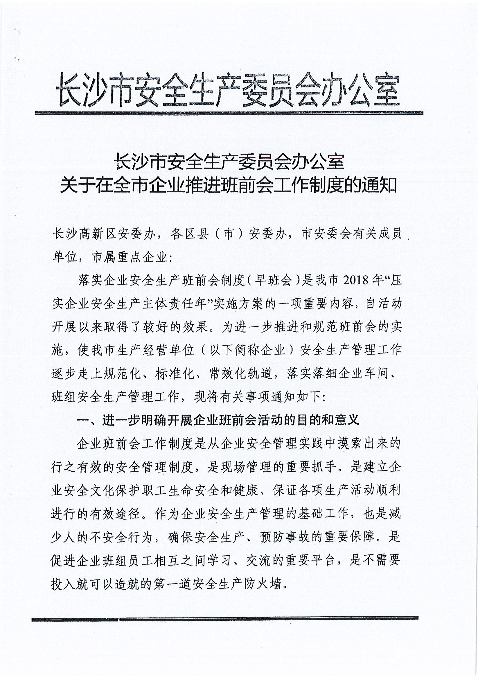 長沙市安全生產委員會辦公室關于在全市企業推進班前會工作制度的通知