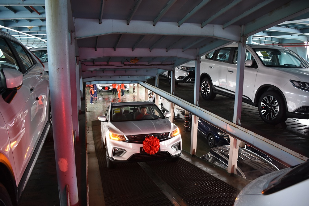 6月18日,隨著一聲汽笛鳴響,滾裝船“港達6號”輪駛離交通集團長沙新港汽車滾裝碼頭,船上裝載了廣汽三菱、廣汽菲克、北汽、吉利、馬自達等品牌的汽車近200臺,將于20小時后抵達武漢,輻射至川渝和華東地區。這是經過一年半的緊張施工,克服諸多困難,在集團堅強領導下,長沙新港汽車滾裝碼頭發送的首條航班,標志著湖南省首個專業汽車滾裝碼頭正式投入試運行,徹底結束湘江商品汽車不能滾裝運輸的歷史。省人民政府辦公廳巡視員羅建軍,省水運管理局黨委書記、局長李建斌,市人民政府副市長邱繼興及行業相關部門領導,各大港口、物流商和汽車主機廠嘉賓出席本次首航儀式。