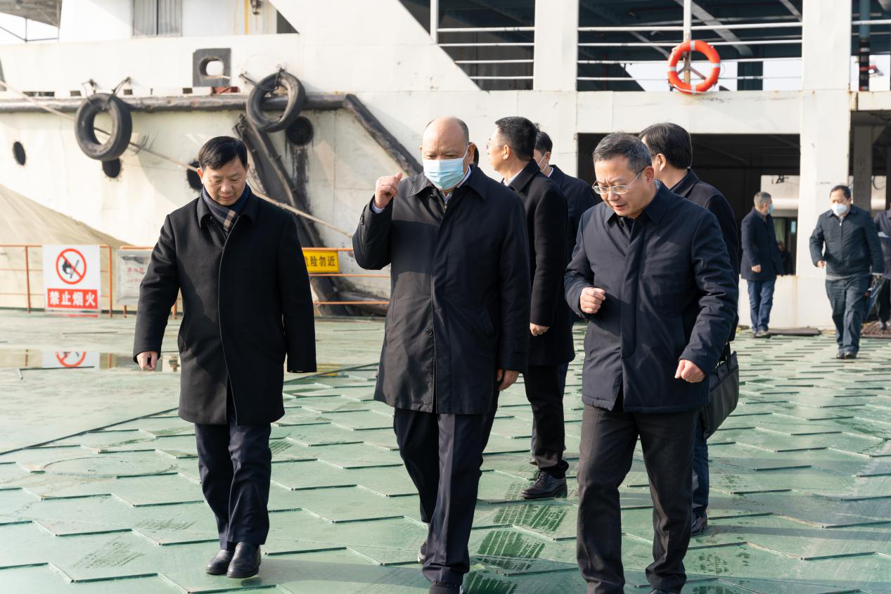 副省長李建中調研長沙交通集團長沙新港    2月15日,副省長李建中調研湘江航道及港口建設發展情況,來到長沙港霞凝港區實地考察。長沙交通集團黨委書記、董事長李建國,黨委副書記、董事、總經理劉俊武在長沙新港陪同考察。 李建中一行乘船從長沙新港滾裝碼頭上岸,先后參觀了長沙新港企業文化展廳、智能調度中心,李建中詳細了解了長沙新港港口建設、作業裝卸能力、智慧港口建設等情況。 李建中指出,要全面貫徹落實黨的二十大精神和省委、省政府決策部署,落實“統一平臺、統分結合,水港協調、港產聯動,市場為主、行政推動”的發展方向,做到市場拓展與港口運行“兩手抓”,打造湖南區域港口統一品牌,加快推動港口高質量發展。 李建中強調,推進全省港口集約化發展,加大對湘、資、沅、澧“四水”千噸級碼頭整合力度,形成規模效應;優化港口發展資源配置,為港口預留發展空間;發揮多式聯運優勢,形成港區優勢互補、公鐵水高效聯運、產業無縫銜接的港口發展體系;做好臨港經濟文章,帶動相關產業,支持優勢產業,積極引導產業臨港聚集;切實抓好安全生產和生態環境保護,提升港口安全發展、綠色發展水平。 |