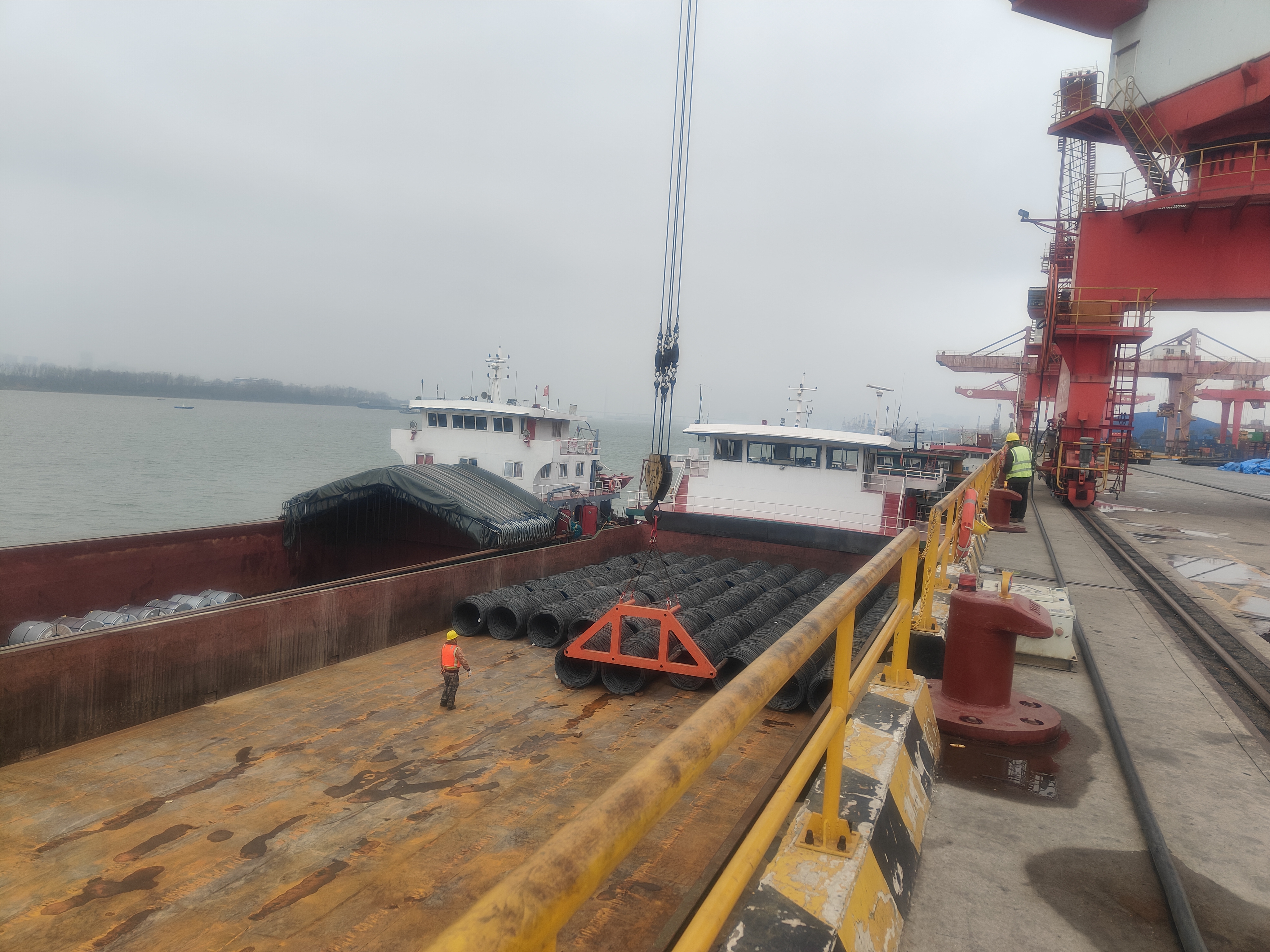 11月20日,湖南省城陵磯港口集團長沙新港公司1號吊現場,裝卸人員正在利用四齒吊具進行盤螺裝卸作業,僅需2名裝卸人員用時3分鐘時間就將盤螺裝卸至指定位置。而這項工作在此之前需4名裝卸工人來完成。  據悉,以前各班組吊裝卸盤螺時大都采用鋼絲繩進行吊裝,需要的裝卸人員多、勞動強度大,用于吊裝盤螺的鋼絲繩損耗率較高。 為解決這個問題,長沙新港公司于11月1日定制了盤螺四齒吊具,生產、設備班組帶領技術骨干開展革新攻關,花費近一周時間先對存放在我司貨場各個廠家生產的盤螺、線材進行精確測量,再對接定制廠家,畫出吊具圖紙。通過不斷磨合、調試,目前該吊具已滿足我司絕大部分盤螺、線材裝卸船需求。隨著該吊具的全面投入使用,使作業面裝卸人員得到優化、作業人員勞動強度減少的同時還降低了鋼絲繩的損耗,進一步保障了員工作業安全。后期通過不斷融合,作業效率將得到進一步改善。 據了解,今年10月9日,長沙新港公司自主改進的元明粉噸袋吊具開始投入使用。該吊具結合港口可持續發展理念,經過不斷磨合改進,噸袋吊裝由原一次僅能吊裝4袋,到現如今可一次吊裝10袋,且該吊具能自動取勾,使噸袋作業效率提升了50%,作業人員減少了25%。大大改善了以往噸袋作業貨物易破損的缺點,確保了貨物、人員、機械的合理優化配置。 長沙新港公司始終堅持從實際出發,以工藝創新為引領,找準發展切入點和著力點,不斷優化作業流程,因地制宜發展港口新質生產力,加快創新成果與現實生產力轉化,以技術創新推動港口向智能化、綠色化轉型升級,進一步提升人機工效,推動港口可持續發展! |