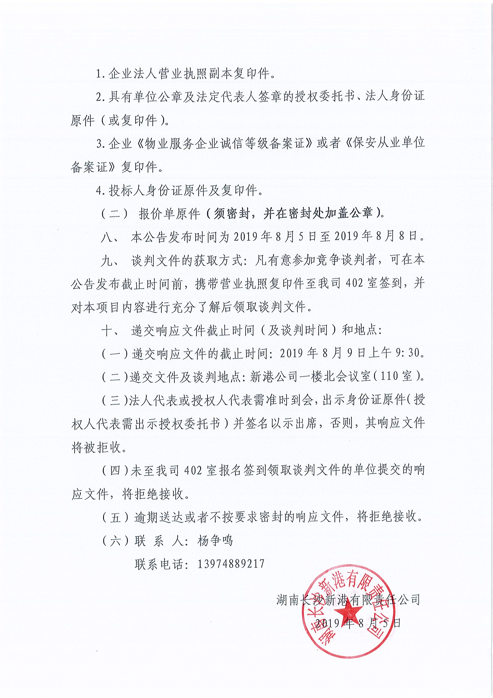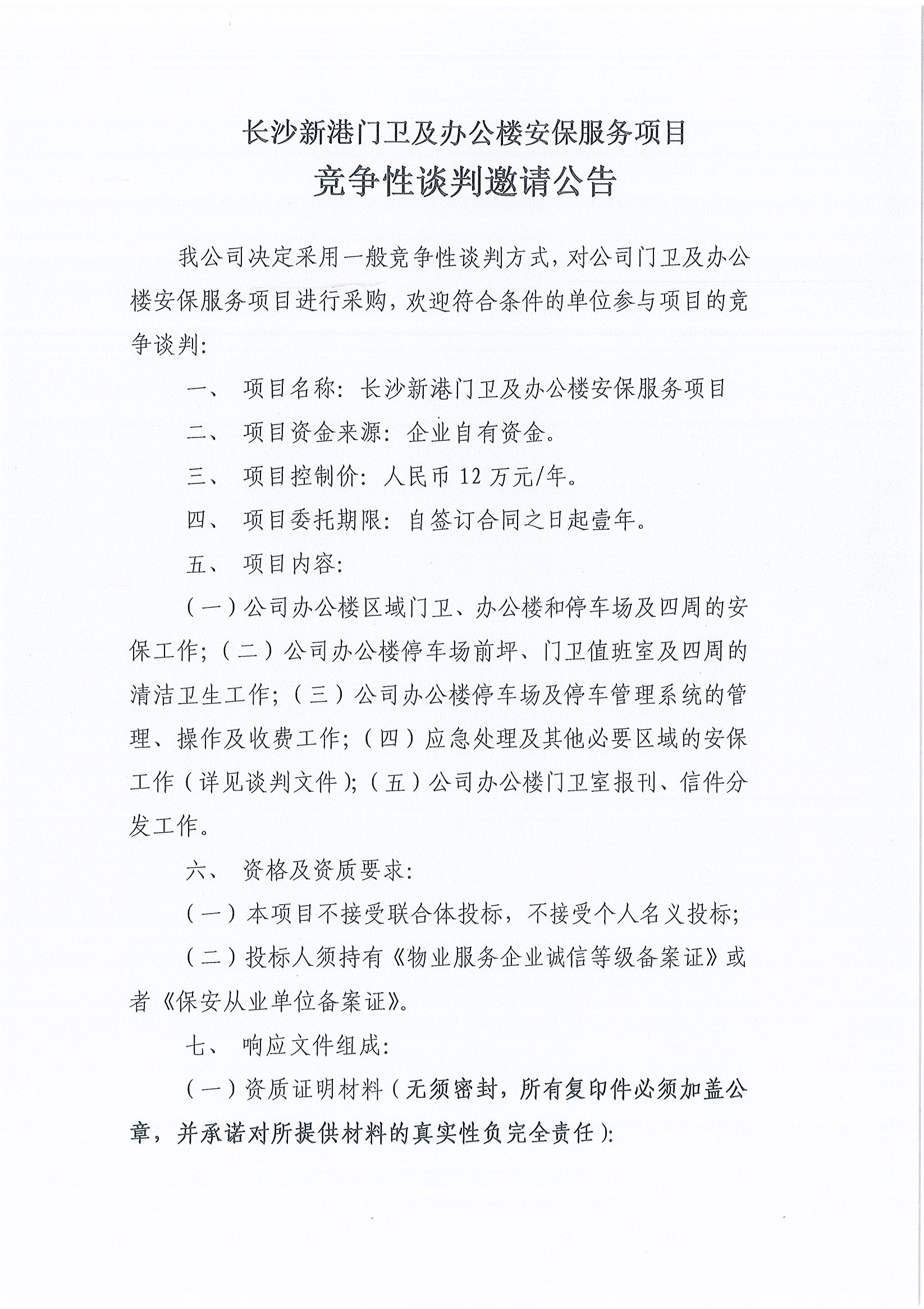 長沙新港門衛及辦公樓安保服務項目競爭性談判邀請公告