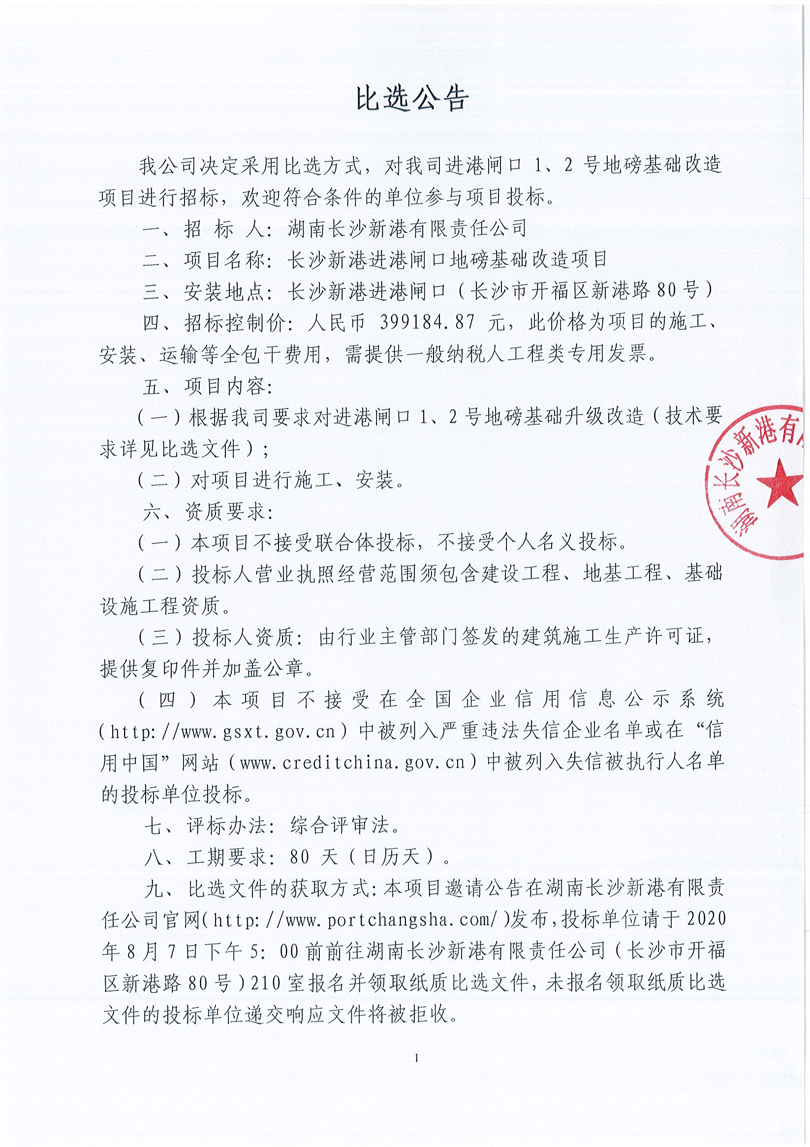 長沙新港進港閘口地磅基礎改造項目比選公告