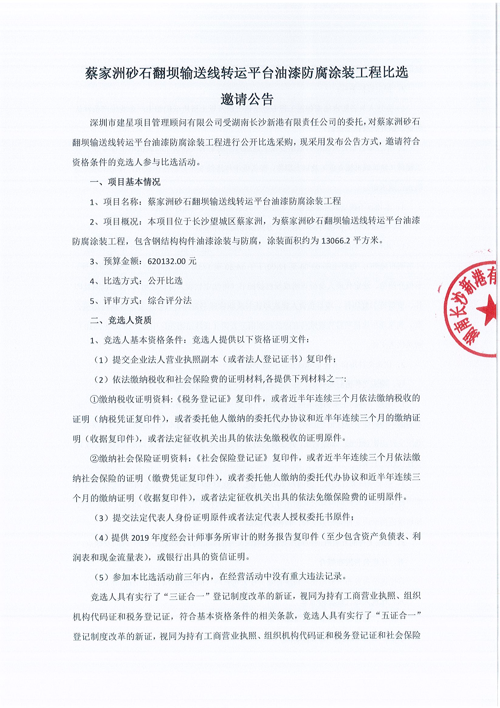 蔡家洲砂石翻壩輸送線轉運平臺油漆防腐涂裝工程比選邀請公告