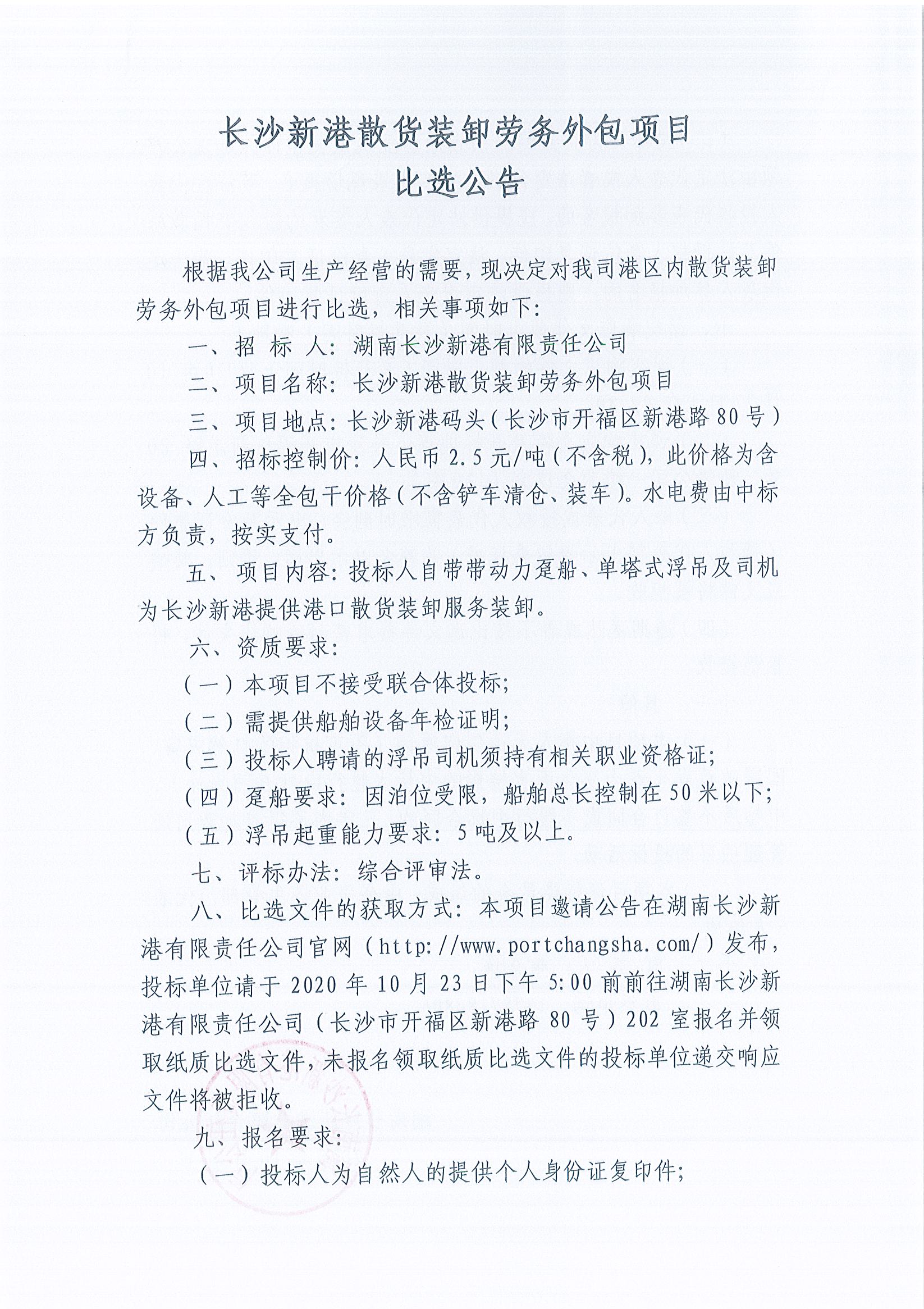 長沙新港散貨裝卸勞務外包項目比選公告