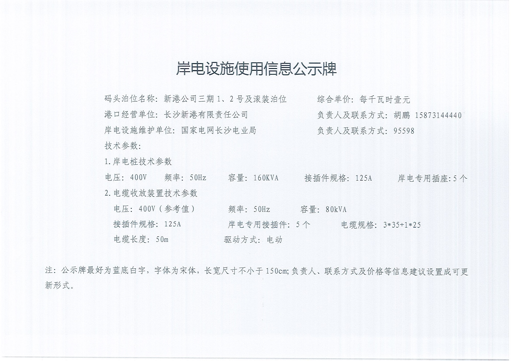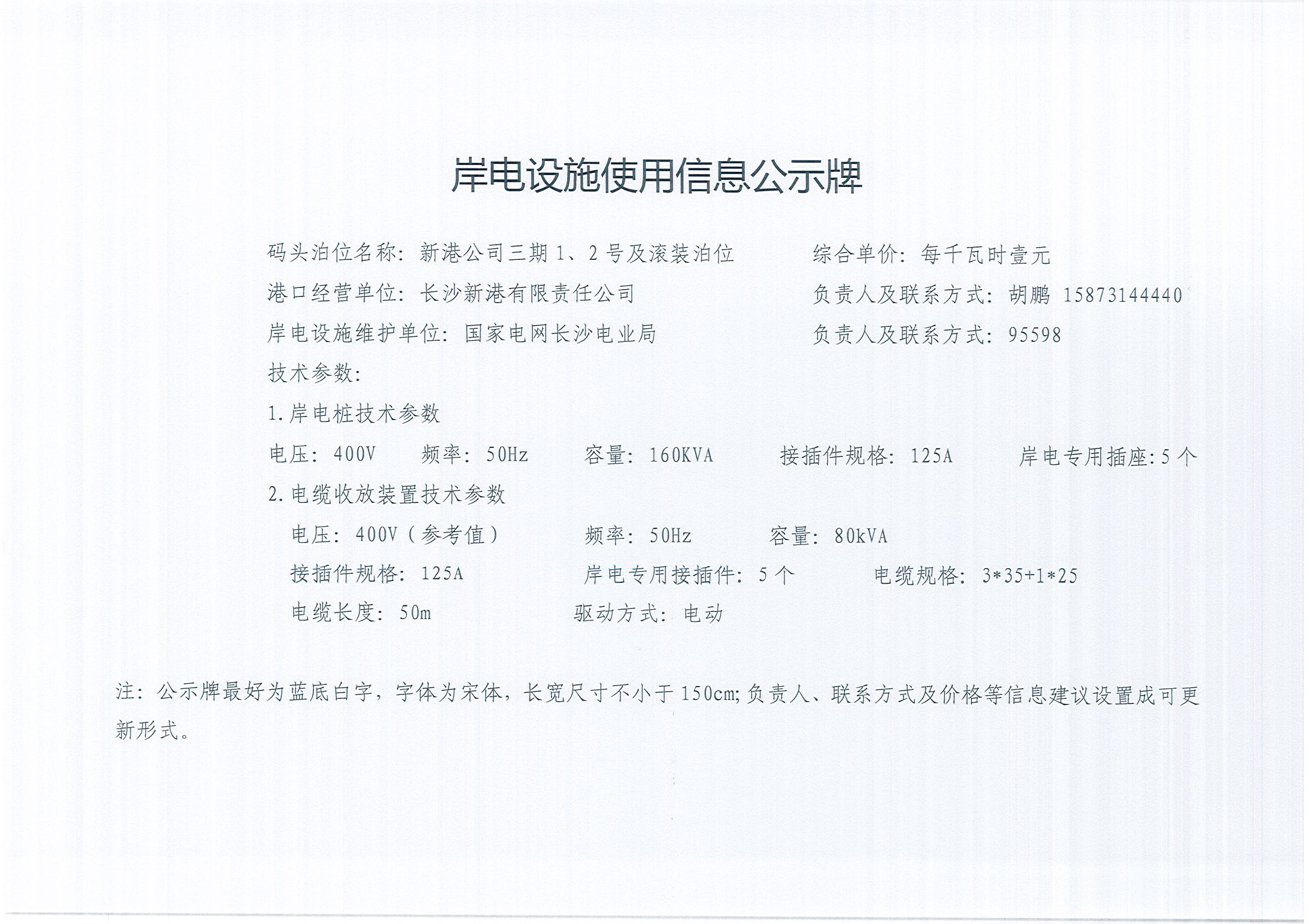岸電設施使用信息公示牌