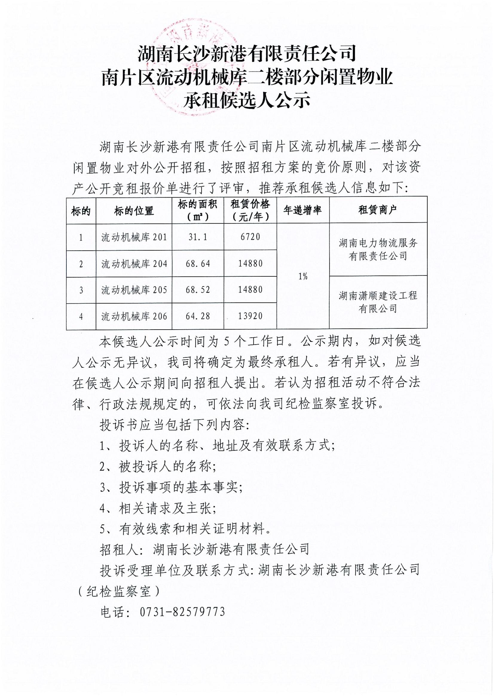 南片區流動機械庫二樓部分閑置物業承租候選人公示