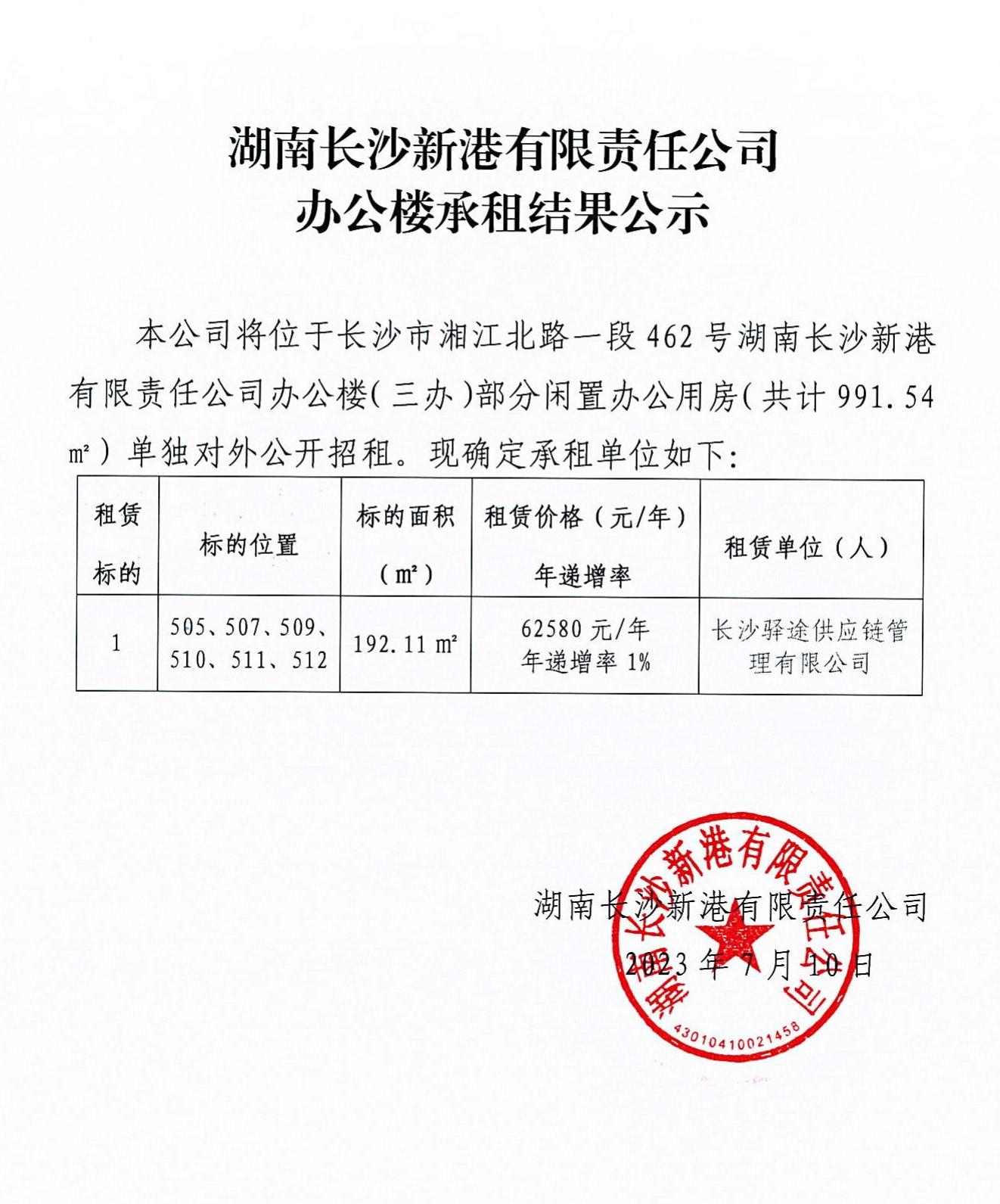 湖南長沙新港有限責任公司辦公樓承租結果公示