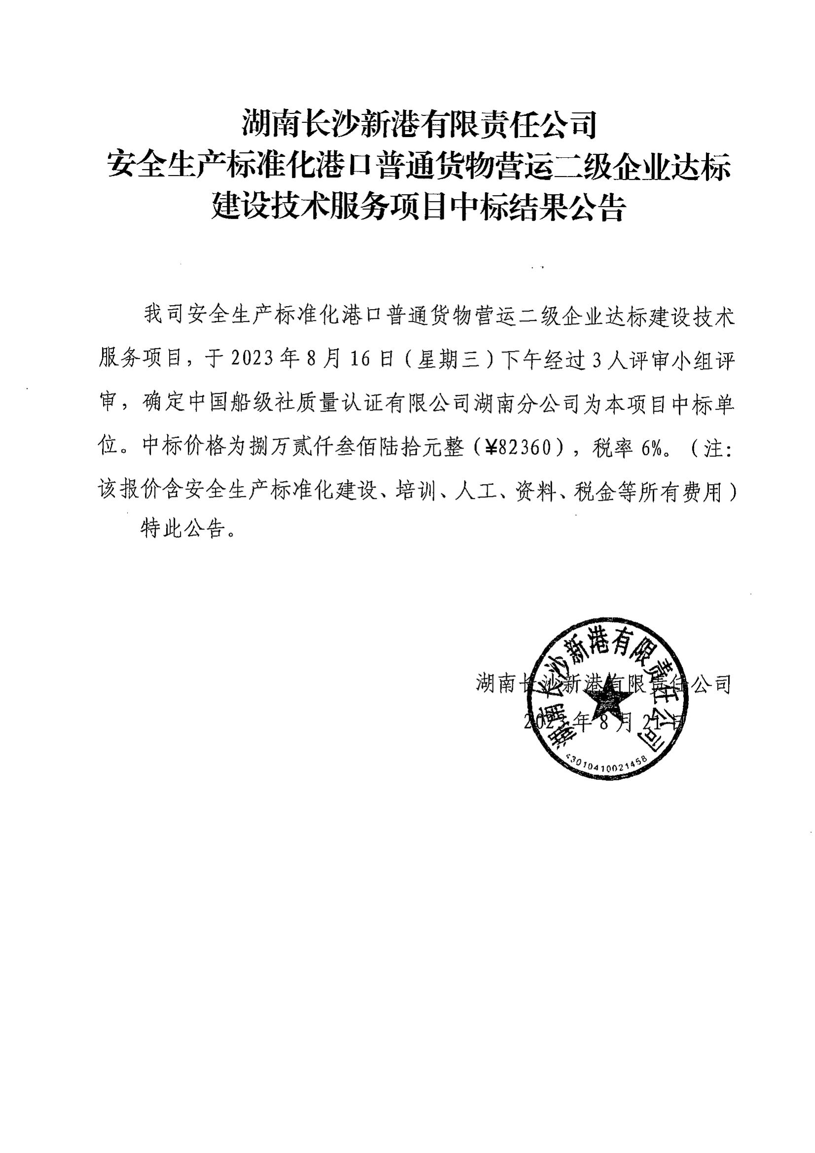 安全生產標準化港口普通貨物營運二級企業達標建設技術服務項目中標結果公告