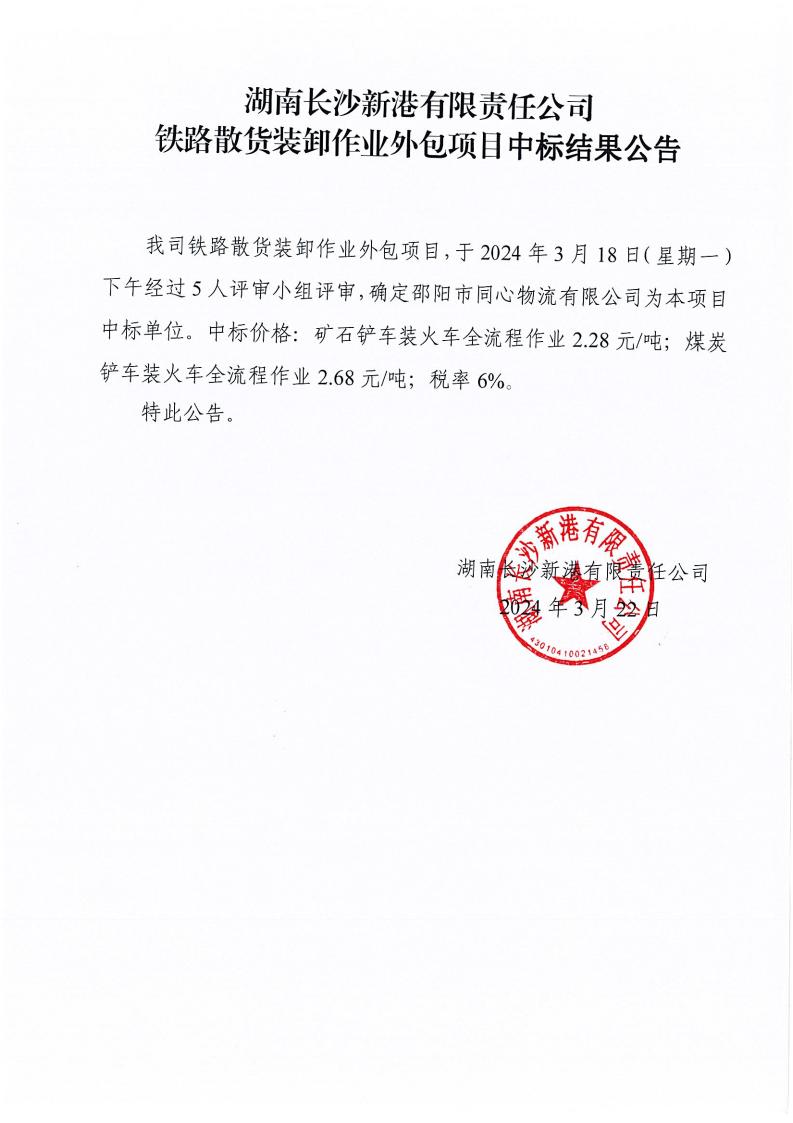 鐵路散貨裝卸作業外包項目中標結果公告