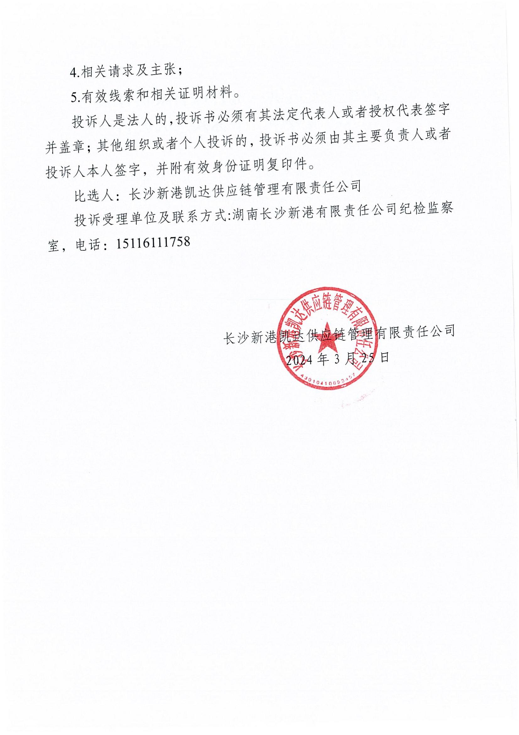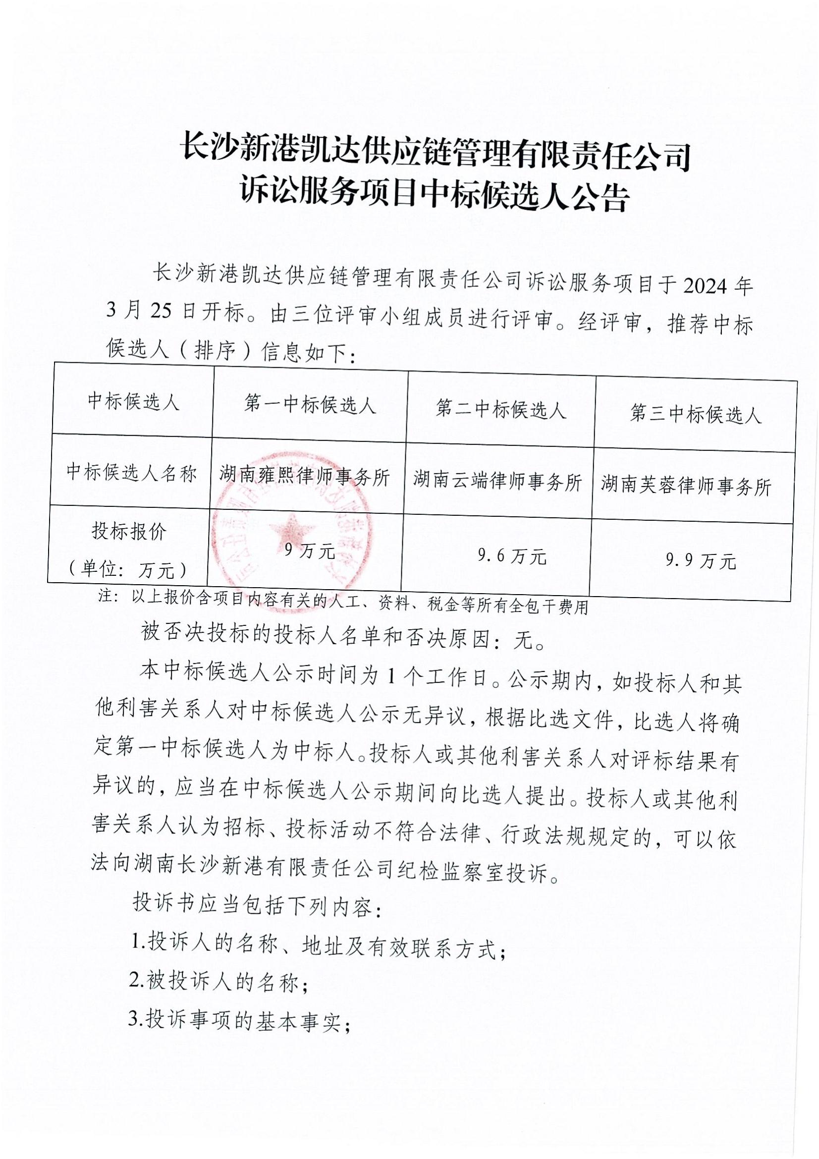 長沙新港凱達供應鏈訴訟服務項目中標候選人公告