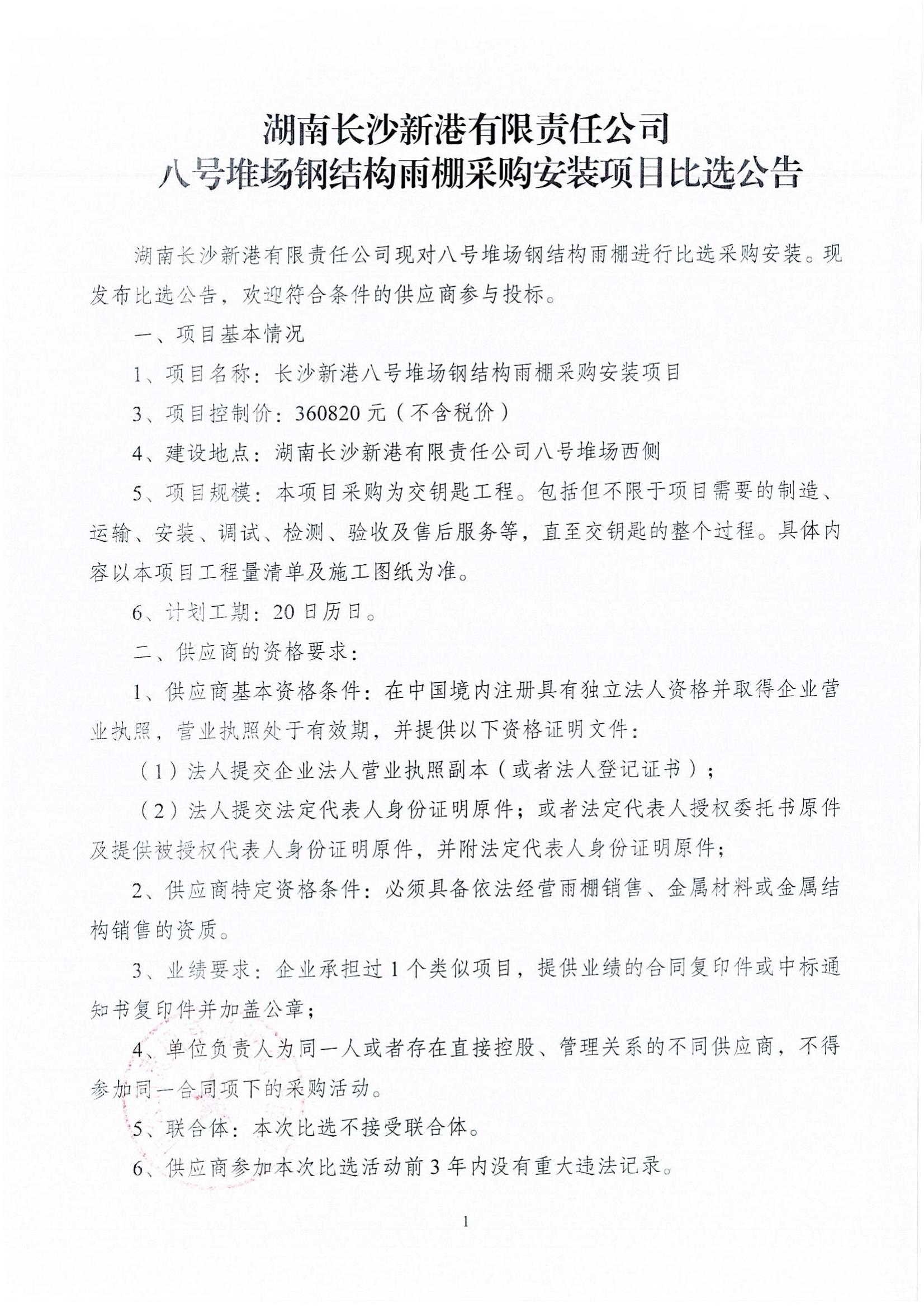 長沙新港八號堆場鋼結構雨棚采購安裝項目比選公告