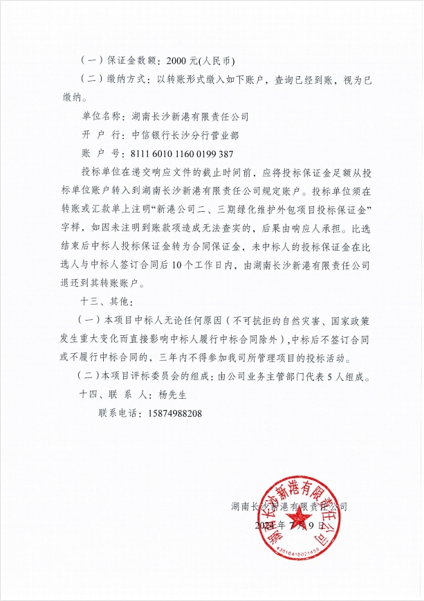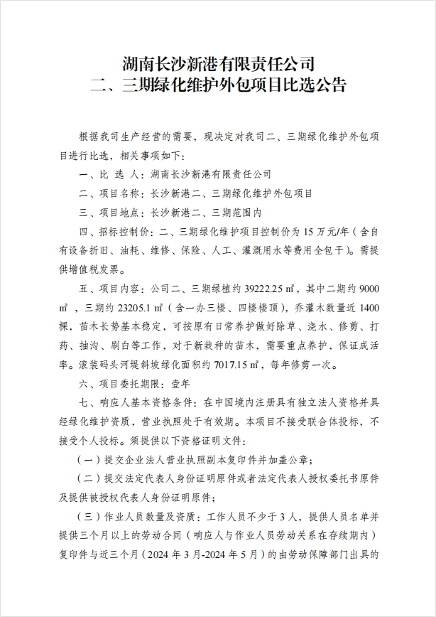 湖南長沙新港有限責任公司二、三期綠化維護外包項目比選公告
